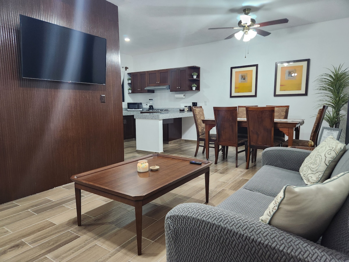 Departamento con alberca, 6 huéspedes, climatizado