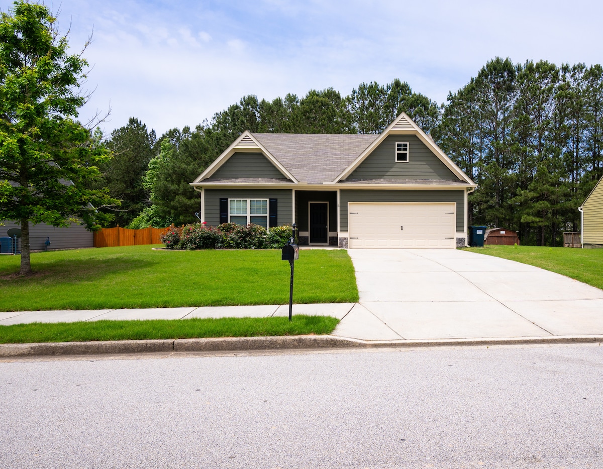 ¡Bienvenido! A un hermoso, nuevo Ranch Style hogar en Villa Rica, GA. Disfrute de un plano de piso abierto con cocina totalmente equipada para sus comidas caseras junto con el comedor, la sala de estar, la chimenea y el sofá nuevo. Casa es a prueba de bebés y tiene una sala de juegos, ideal para los niños! 4 grandes tiendas de comestibles en cuestión de minutos de ubicación (Publix, Walmart, Food Depot & Kroger). 10 minutos en coche de White Oak Park, 27 millas a Six Flags, 35 millas a Georgia Aquarium y 40 millas al aeropuerto ATL.
