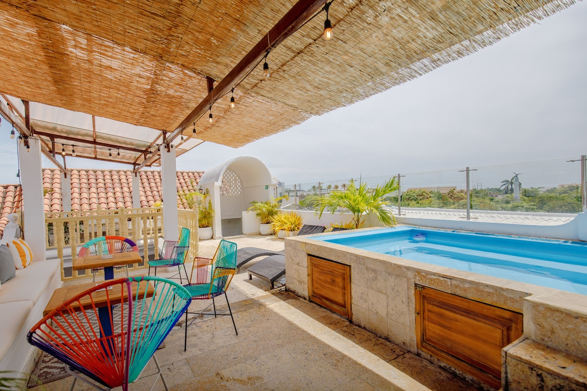 Have the best trip staying in this XVIII-century townhouse, recently restored and thoughtfully designed with a smooth blend of classic charm and modern comfort. Located downtown at the iconic convergence of Getsemaní and San Diego, La Dominica is perfectly situated to experience the very best of Cartagena’s culture, nightlife, music and gastronomy. Dip in the rooftop pool, unwind, and enjoy the sunset with a breathtaking panoramic view of the Old City’s historic rooftops and walls.