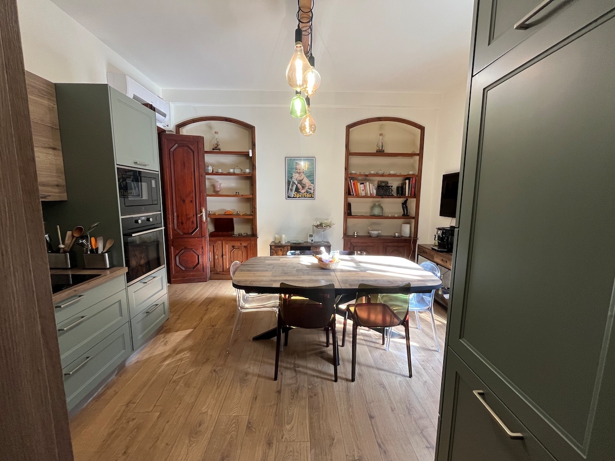La Bergerie le da la bienvenida en un ambiente cálido y luminoso: un gran salón, una cocina equipada y 2 dormitorios en la planta superior. El cuarto de baño está en la planta baja. Le proporcionamos la ropa de cama y los productos esenciales para el desayuno (té, café, chocolate). Para cocinar, también se proporcionan especias y aceite de oliva. La terraza está rodeada de naturaleza con una suntuosa vista de las montañas. Perfecto para unas vacaciones serenas.