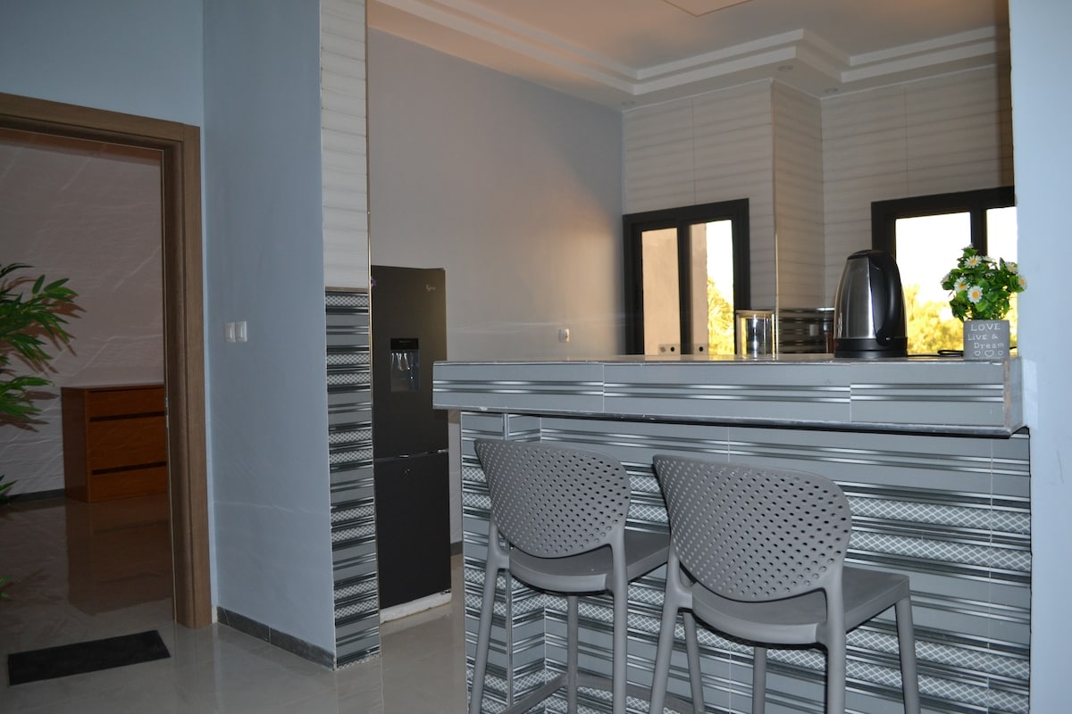Bienvenue chez Djibekel Homes! Découvrez le charme de l’appartement Mbotaay situé au 1e étage de notre villa familiale à Goumel; quartier résidentiel de Ziguinchor apprécié pour son calme et sa sécurité. Totalement équipé, cet appartement cozy est parfait pour vous si vous recherchez la simplicité sans pour autant renoncer à votre confort.