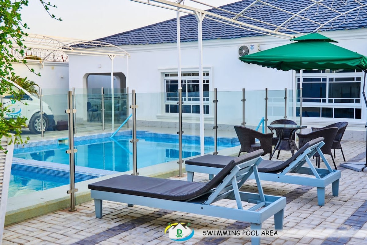 Calme, tranquillité et jardin verdoyant! Notre campement de charme offre des appartements tout confort avec cuisine , salle de bain et terrasse privative. Chaque appartement est équipé de la télévision Canal Plus ( payant ) climatisation et ventilateur. Vous trouverez une piscine et un accès facile à la mer ( 50m). Proximité immédiate du centre ville commerces. Taxe de séjour à régler sur place : 1000 francs par nuit et par adulte Electricité à régler sur place: recharge par compteur WOYOFAL