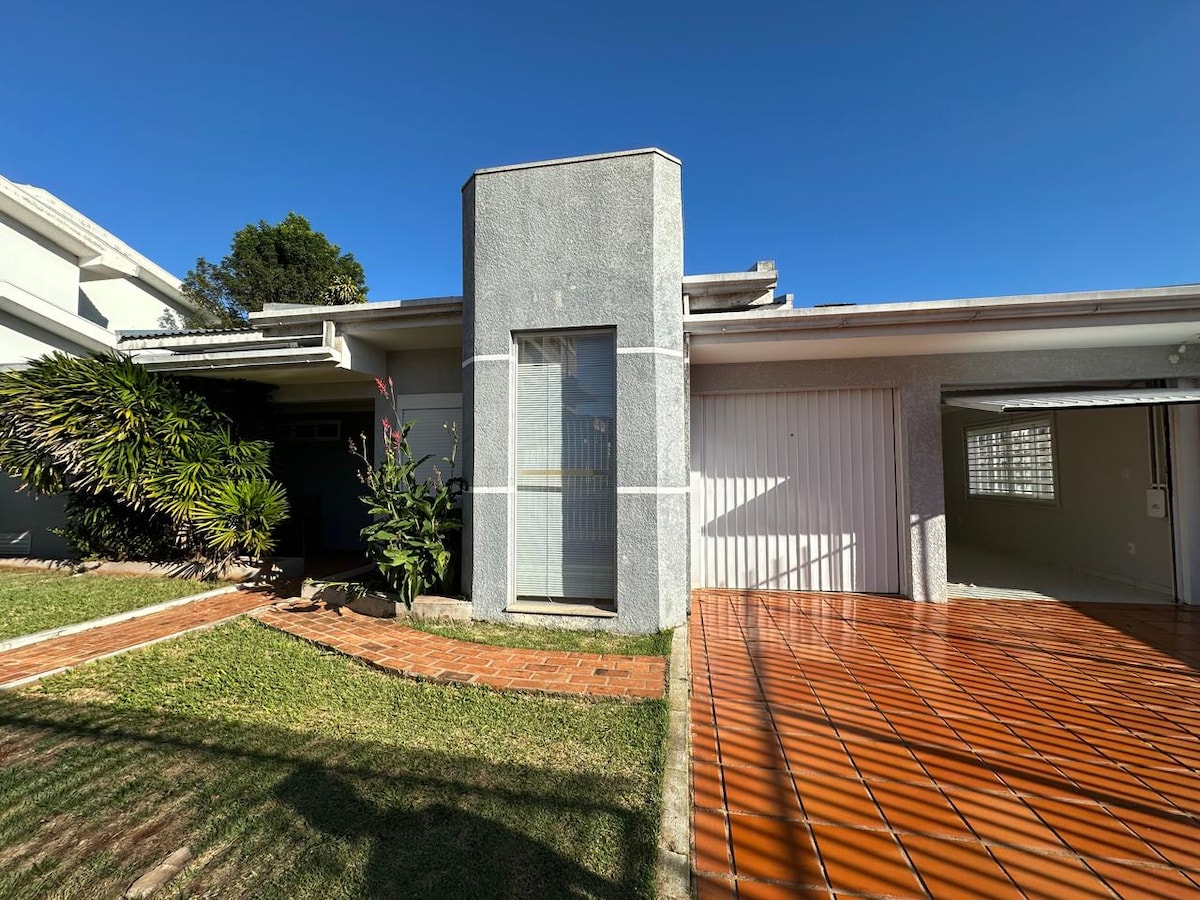 Esta acomodação elegante é perfeita para viagens em grupo. Bairro bem localizado Perto de mercados, farmácias, fácil acesso aeroporto, rodoviária, shopping 05 camas de camas de casal Opção de colchões avulso se necessário Roupa de cama Toalhas de banho Jacuzzi Churrasqueira 5 vagas de garagem 04 Banheiros Casa ampla