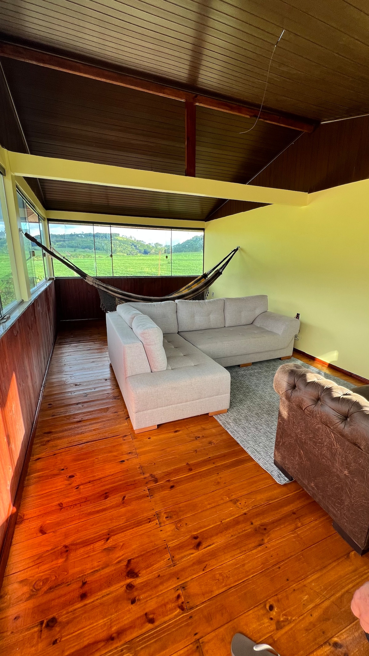 Incredible accommodation, 3 large and comfortable suites in a beautiful triplex; wooded neighborhood with walking park. You will wake up to birdsong and a beautiful view of the riparian forest of the municipal lake. Easy access to restaurants, supermarkets, shopping malls, the center and BR 277, you can choose by car, bus, Uber or on foot. There are 750m² and a garage for 10 cars. Integrated swimming pool and common area. Full kitchen with barbecue and utensils. Small breakfast can be arranged.