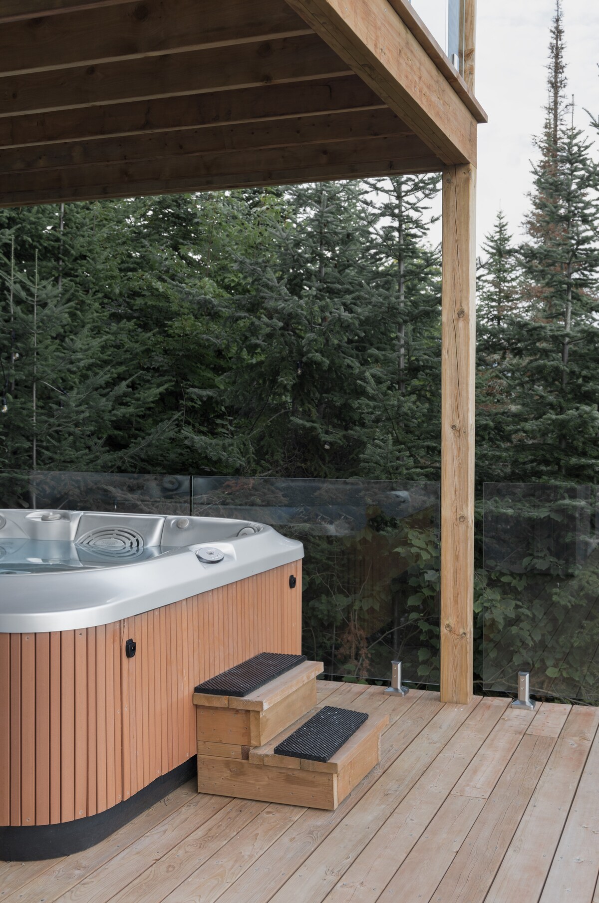 Pequeño chalet escandinavo para dos personas idealmente ubicado para disfrutar de las atracciones de Charlevoix. Cuenta con un circuito termal (bañera de hidromasaje, sauna, hammam). Muy íntimo y en medio del bosque, la vista da al majestuoso río y a las montañas a lo lejos. Todo el equipamiento moderno está allí y la comodidad es absoluta: aire acondicionado y chimenea al aire libre. El diseño de concepto abierto fue diseñado para una experiencia inmersiva en la naturaleza: grandes ventanales, ducha panorámica. Acceso a través de una carretera privada a 500 m.