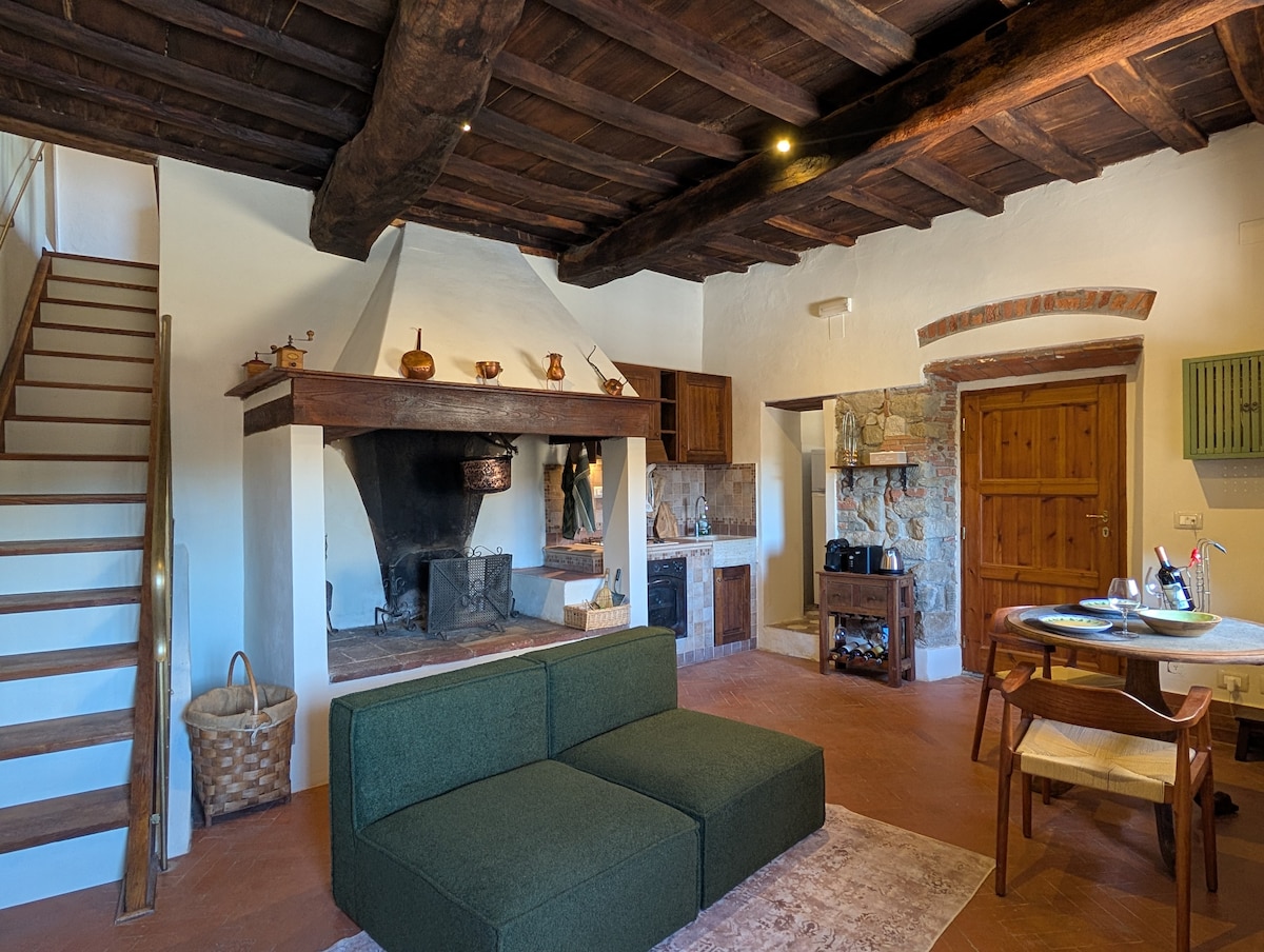Casa al Poggio es una típica casa de campo de la zona de Chianti que se distribuye en 145 metros cuadrados en dos plantas. La planta baja es una gran sala de estar, con cocina y sofá, chimenea. Arriba hay 2 dormitorios dobles grandes y un sofá cama en la habitación abierta del medio, siempre configurable como 2 camas individuales o una cama doble y un baño relajante con ducha y bañera con vistas a Chianti.