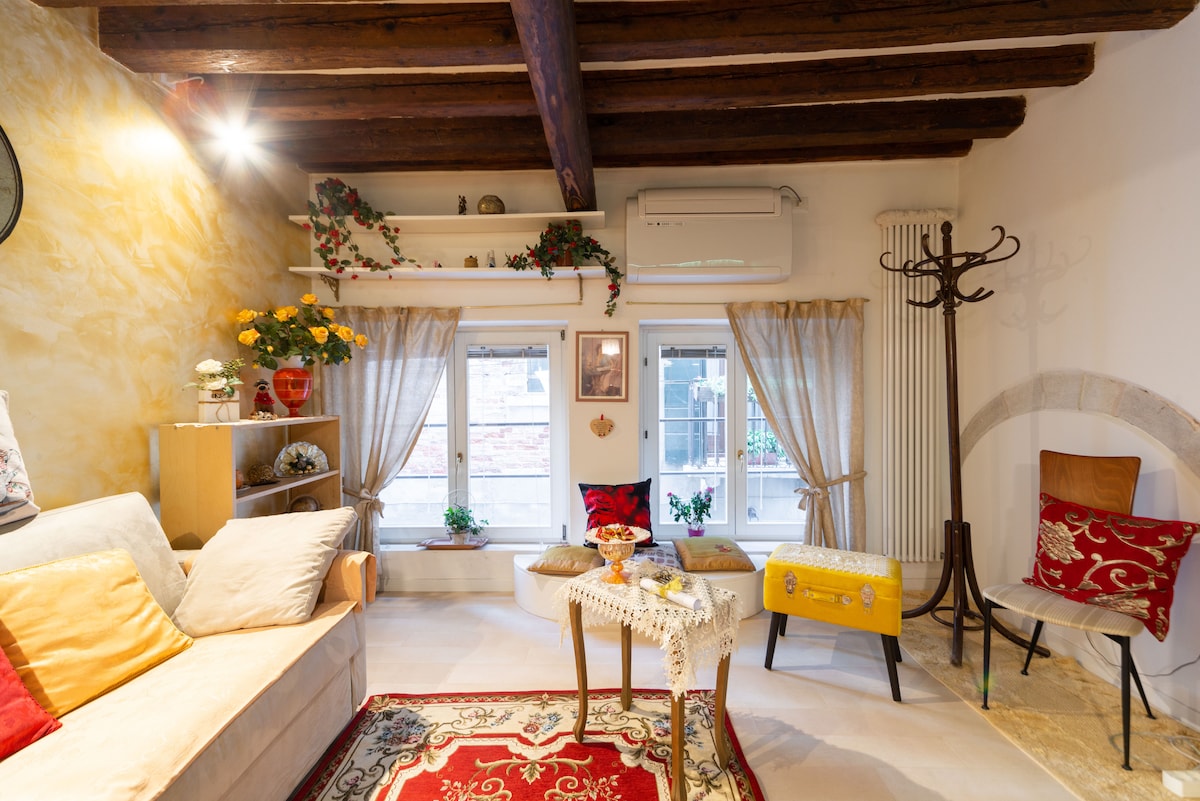 VENICE ACCESS FEE FREE (only city tax 4€ x person x day ) Newly renovated and very bright 50 sqm apartment, located in the historic center of Venice, in the Castello district, where you can experience the true Venetian lifestyle. The apartment features a double bedroom and a comfortable sofa bed, one bathroom, a living room, and a fully equipped kitchen. A crib and high chair are also available. Bed linen, extra pillows, and soft towels are provided. Check- in is not available after 8 pm