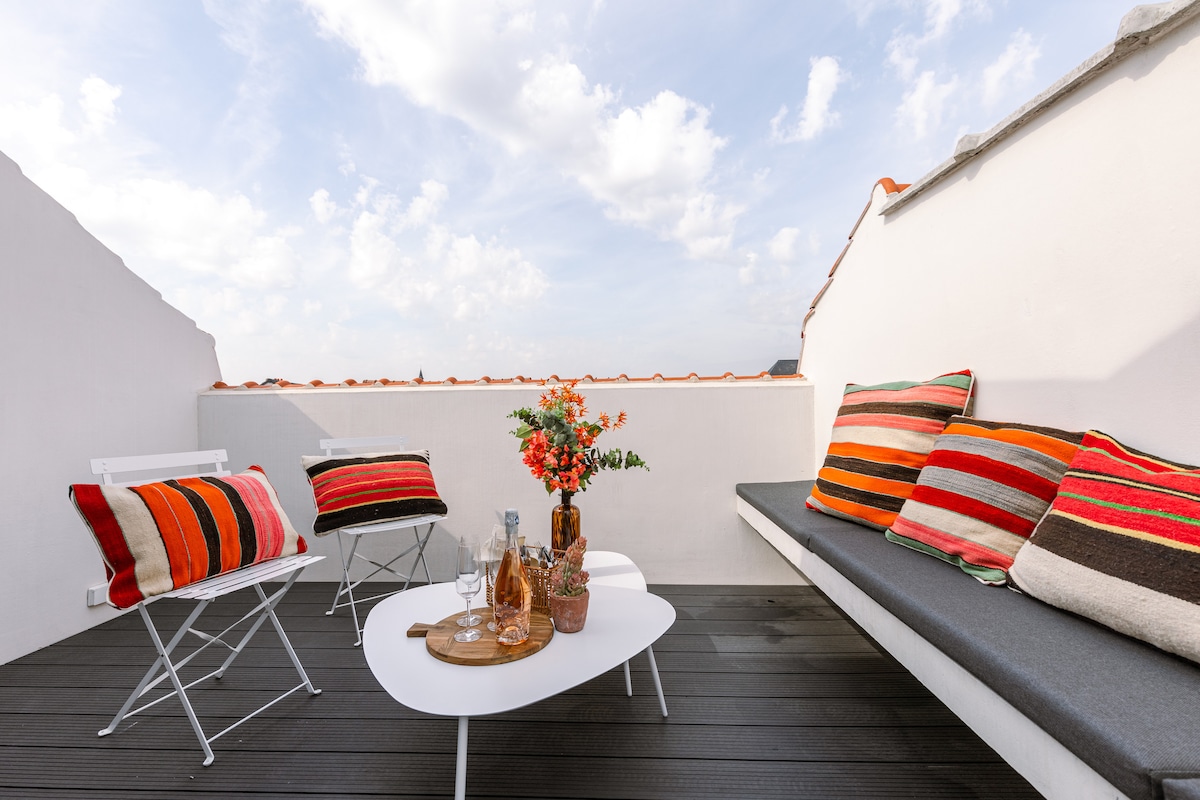 Contempla los tejados de la ciudad en un luminoso refugio bohemio