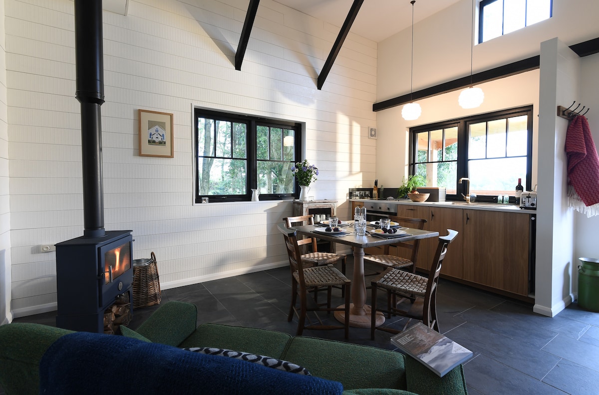 La cabaña del pastor y la sala de arte están cerca del río. Hay cuatro alojamientos independientes dentro de los terrenos, cada uno con acceso a sus propias bañeras de hidromasaje. La casa de pastor tiene una ducha y un inodoro, secador de pelo, batas y un calentador. El uso exclusivo de la sala de arte está incluido y tiene instalaciones de cocina completas, una nevera, una estufa de leña, mesa y sofá. Es una escapada ideal para un fin de semana romántico. El jardín está adornado con luces de hadas y se invita a los visitantes a alimentar a las alpacas.