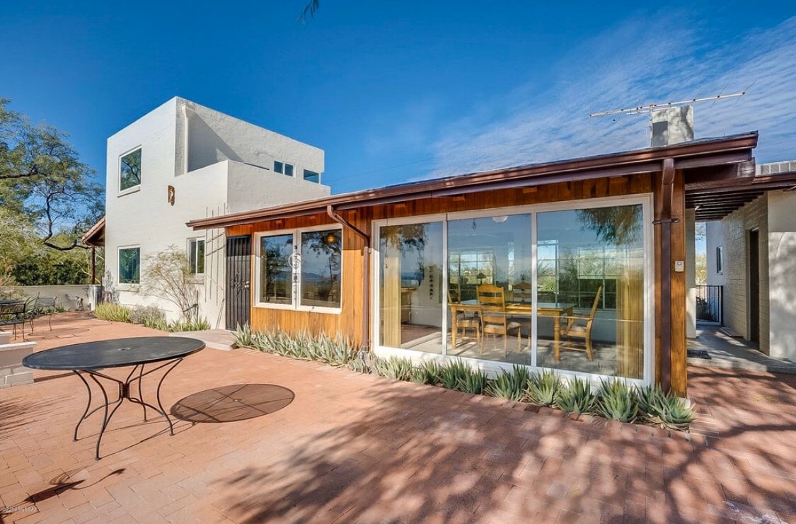 1937 adobe bungalow, located in the historic Palo Verde neighborhood, just minutes away from UofA, downtown, Banner Medical Center, Tucson Botanical Gardens and a few blocks from The Arizona Inn. Thick adobe walls and double-pane windows make it a quiet retreat. Enjoy the covered patio, mature well-tended desert landscape--front and back--and a private outdoor shower. Combines contemporary convenience with vintage charm, including high-end appliances and a cabinet/desk/murphy bed combination