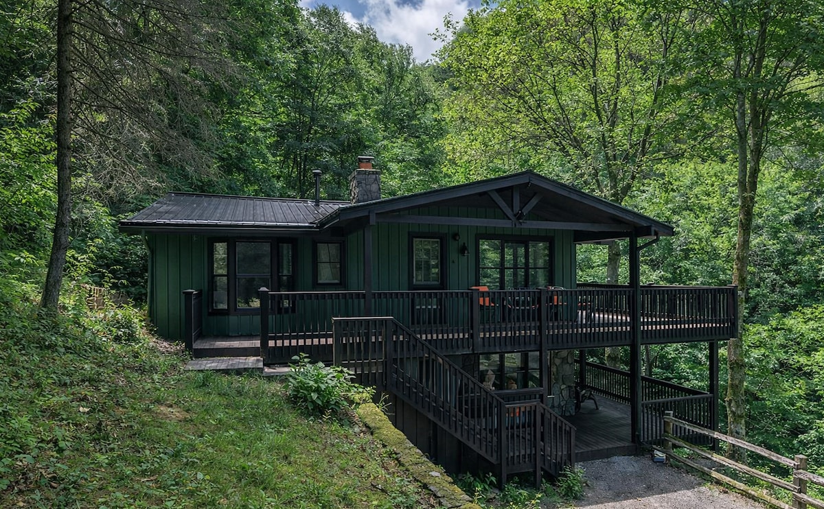 No es solo una habitación con vistas... sino toda una casa con VISTAS y mucha propiedad para la privacidad y la experiencia de «Un chalet de montaña perfecto para fotos». Relájate y disfruta de las vistas de montaña de largo alcance desde la sala de estar y las cubiertas de esta impresionante casa de 2 dormitorios/2 baños. Cocina moderna que se abre a la chimenea de piedra y a las amplias ventanas, un montón de espacio al aire libre para disfrutar de la naturaleza, recientemente remodelada para un atractivo moderno pero rústico, en más de 25 acres con rutas de senderismo en el lugar, cerca de Waynesville y Asheville.