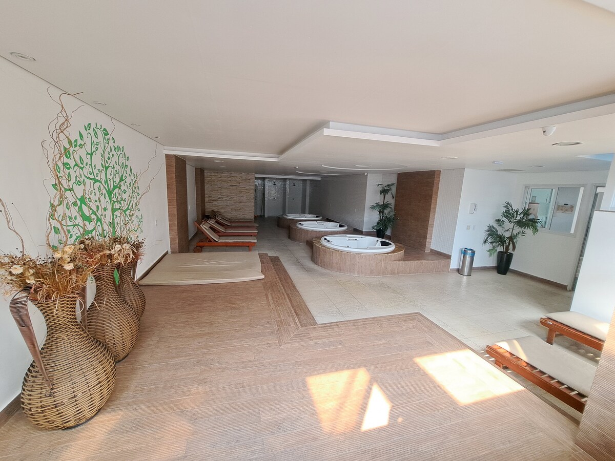Tranquilo para trabajar y descansar. A 9 minutos del aeropuerto, a 4 km del lago Paranoá y al lado de Casa Park y Park Shopping. Estructura de 4 estrellas con 4 piscinas (semi-olímpica climatizada) sauna y gimnasio. El centro de negocios, la recepción y el restaurante están abiertos las 24 horas. El apartamento tiene microondas, cocina, minibar, filtro de agua, cafetera, ollas, licuadora, sandwichera y utensilios. El baño tiene secador de pelo y barra de seguridad. Manta extra, plancha y tabla de planchar en el armario. Muy buen wifi y la TV es inteligente.
