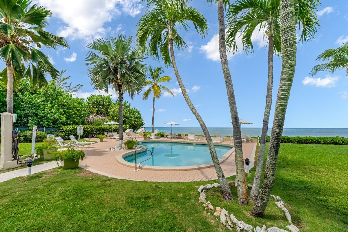 Apartamento de 1 dormitorio recién reformado a solo 50 pies de Seven Mile Beach en West Bay. Desde el balcón tienes una vista parcial de la playa. Este apartamento tiene todo lo necesario para una estancia cómoda y el colchón de espuma viscoelástica te garantizará un gran descanso nocturno. El restaurante Alfresco está al otro lado de la calle y la bahía de Camana está a 8 minutos en coche. También hay un cómodo sofá cama en el salón con un colchón tamaño queen de espuma viscoelástica para huéspedes adicionales. También hay una lavandería compartida en el lugar.