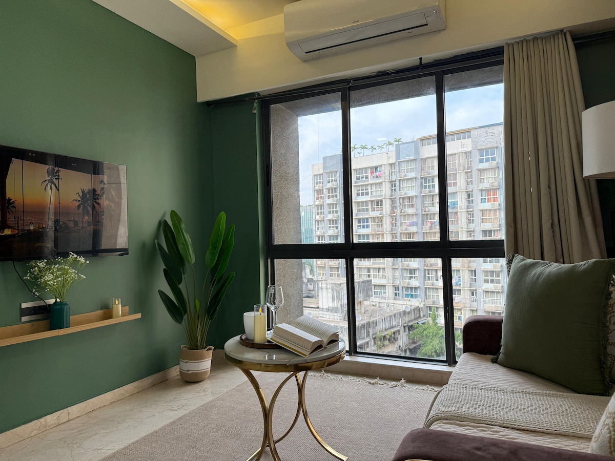 Check out our IG: @osiapartments Just minutes from Jio World Garden, this aesthetic 1BHK is your calm pocket of Mumbai — sun-filled, quiet, and thoughtfully designed. Wake up to birdsong and golden light, enjoy your coffee by the window, or work peacefully with a skyline backdrop. In the evenings, soft lighting and cozy seating turn the apartment into a warm retreat. ✔ Car Parking ✔ Cozy living room ✔ Fully equipped kitchen ✔ Fast Wi-Fi ✔ Smart TV ✔ Daily cleaning