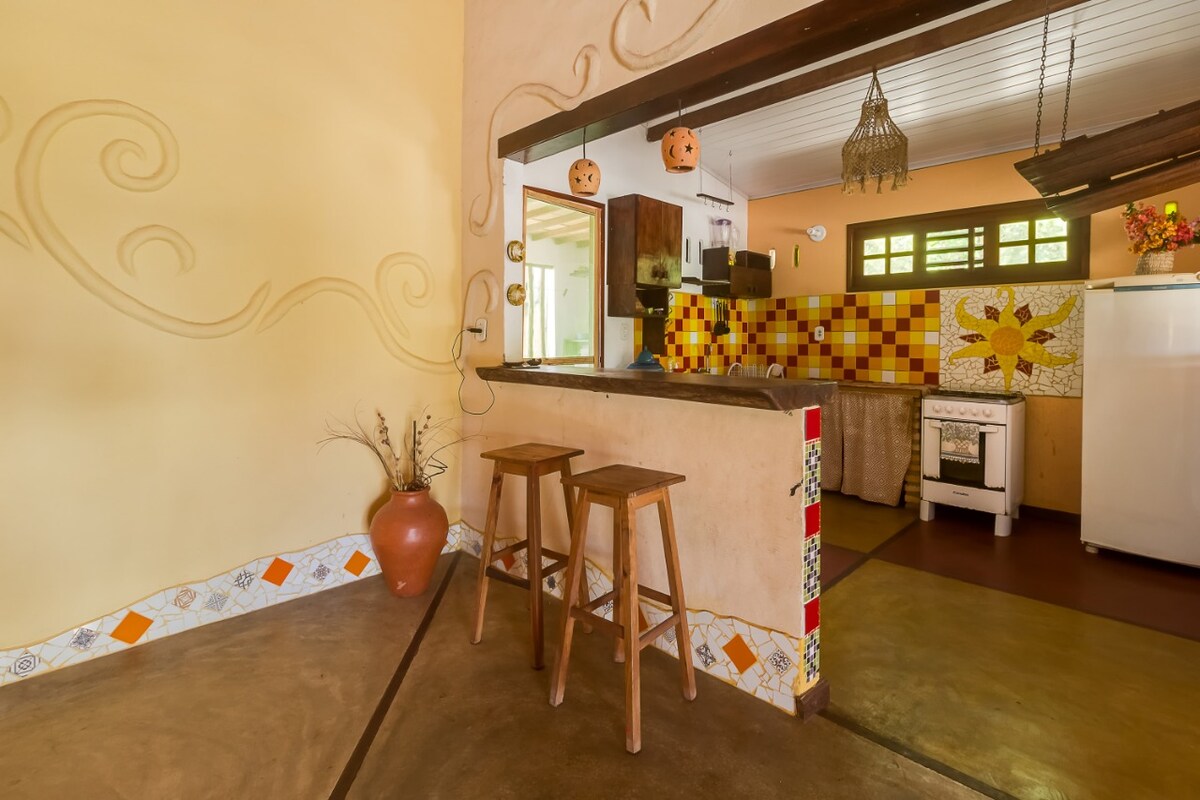 Encantador chalet de edificio natural con capacidad para un máximo de 4 personas, situado en uno de los lugares más tranquilos de Barra Grande, en el famoso barrio de Borogodó. Lugar perfecto para relajarse y disfrutar de la naturaleza con la compañía de aves, en una superficie de casi 1000 metros cuadrados totalmente boscosos y con las especies más diversas de plantas y árboles, entre ellos muchos árboles frutales. Ideal para amantes de la naturaleza y surfistas de cometas... ¡Ven a ver este pequeño pedazo de paraíso en Barra Grande, Piauí!