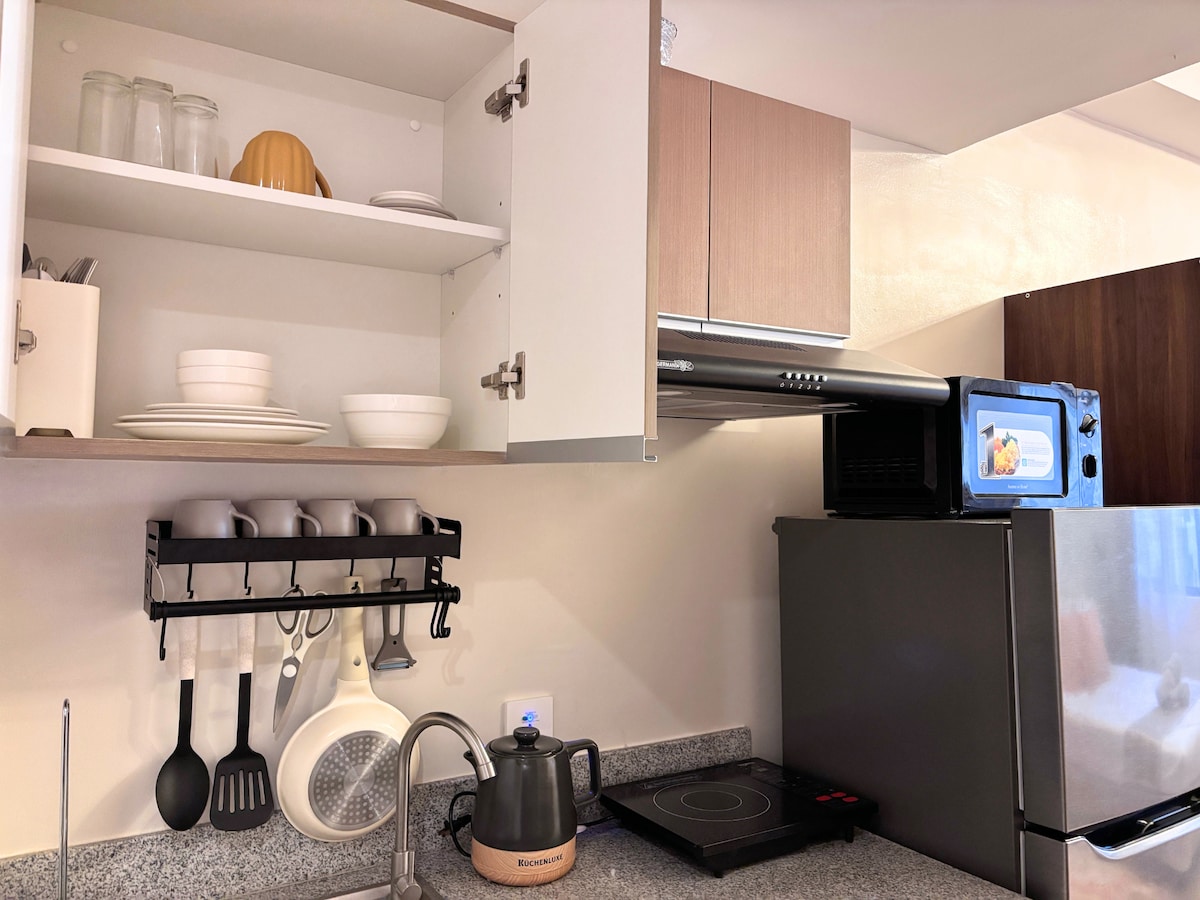 Experience minimalist comfort at Japan-Inspired Studio Unit@BE Residences Lahug in the heart of Cebu City, just a short walk to Cebu IT Park, with easy access to transport and tourist spots. Enjoy everyday convenience of ATM, convenience store, laundry and coffee shops right within the building. Guests can enjoy free access to the spa, gym and pool. The unit is fully equipped for a comfortable stay, with basic cooking appliances like electric wok and rice cooker. Perfect for short and long stay.