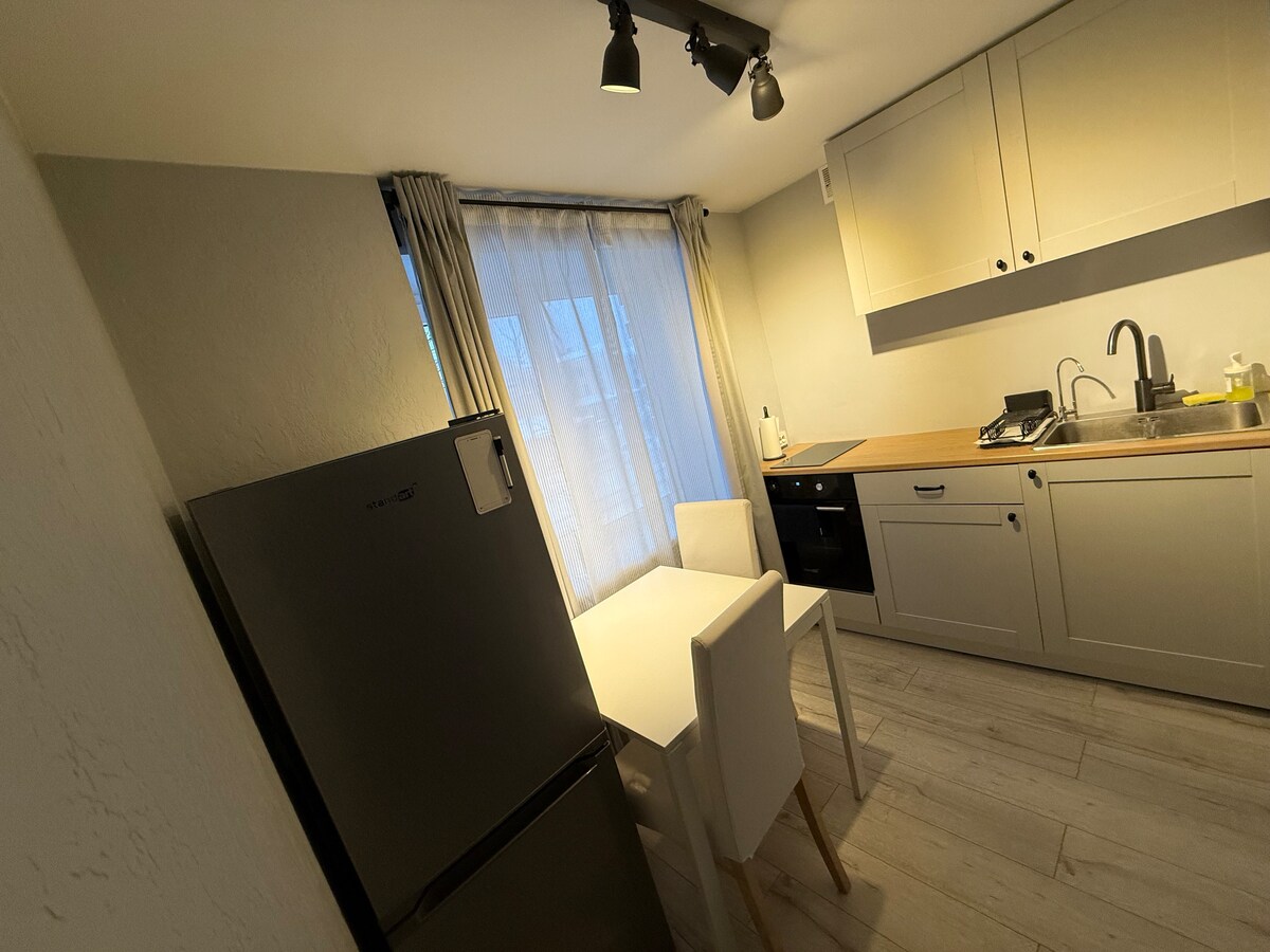 Departamento de un dormitorio con un diseño funcional, adecuado para estadías cortas o más largas. El apartamento incluye: Dormitorio con cama matrimonial y cortinas opacas. Cocina equipada con estufa, horno, refrigerador, lavavajillas y una mesa de comedor junto a la ventana. Sala de estar con muebles esenciales. Baño con ducha, lavabo e inodoro. El departamento se encuentra en una zona residencial tranquila con acceso a tiendas, transporte público y espacios verdes. Adecuado para: Parejas Viajeros solitarios Viajes de negocios o trabajo a distancia