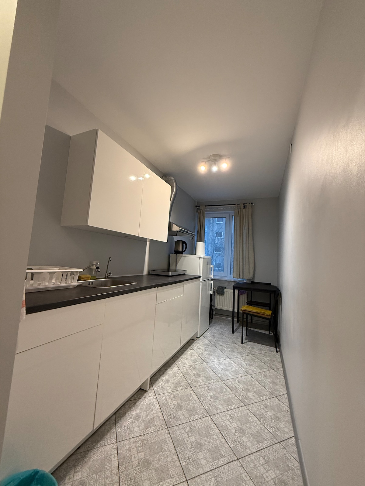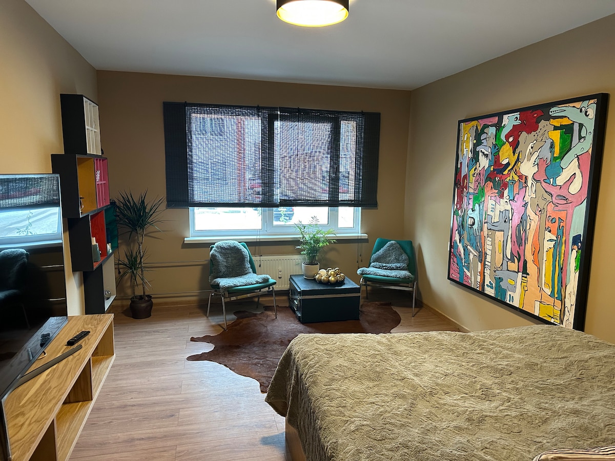 ¡Bienvenido a nuestro apartamento tipo estudio, elegante y recién renovado en el corazón de Jelgava! Ideal para parejas y viajeros solitarios, ofrece comodidad y conveniencia modernas. Disfruta de una amplia cama doble, una televisión inteligente y una cocina totalmente equipada con té y café de cortesía. Con todos los servicios esenciales y restaurantes, tiendas y atracciones a poca distancia a pie, tendrás todo lo que necesitas para una estancia cómoda e inolvidable.