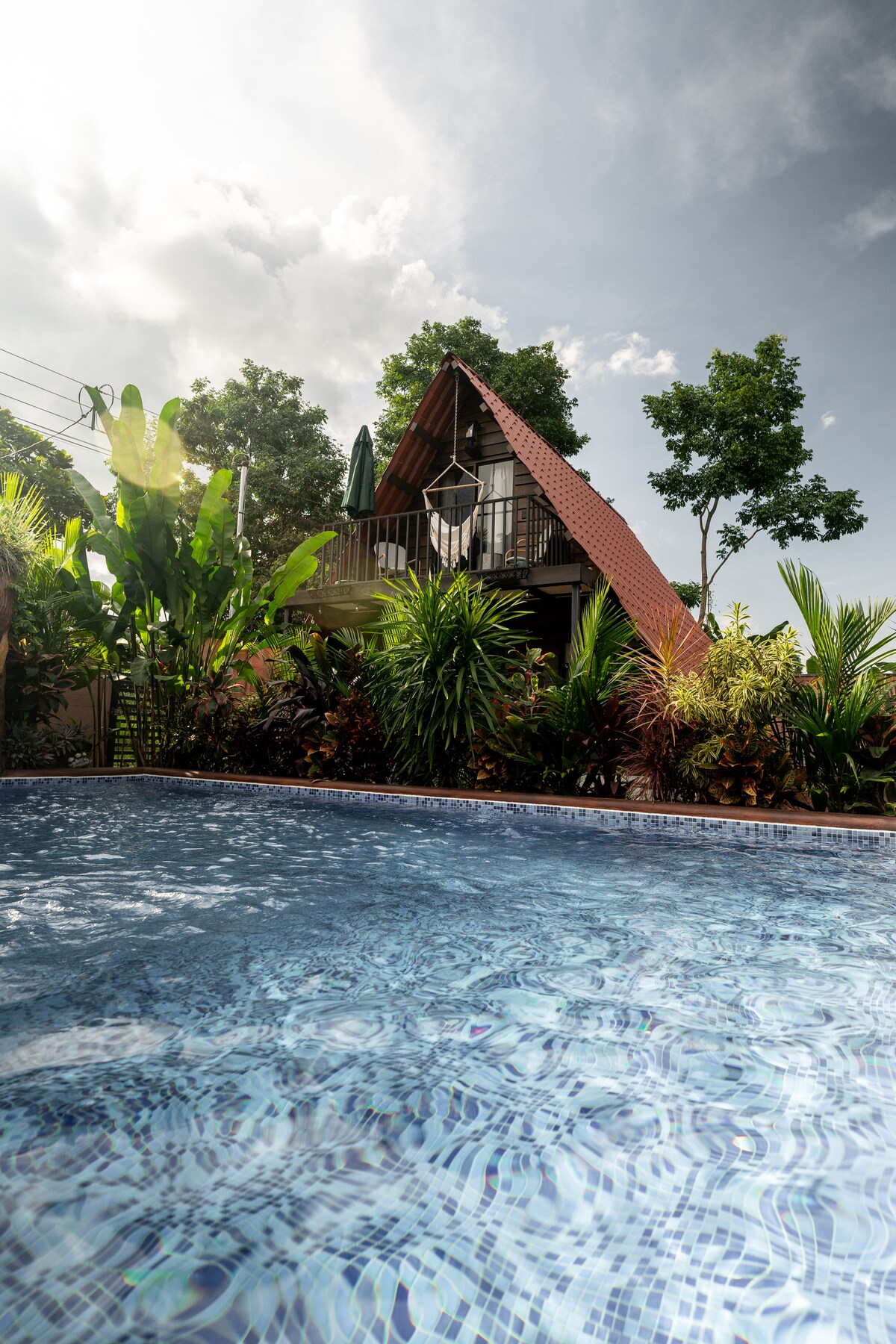 Bienvenido a nuestro encantador chalet "Catalina" ubicado en La Fortuna, Costa Rica. La propiedad está a solo unos minutos del Volcán Arenal Park, increíbles cascadas y relajantes aguas termales. Este chalet de 2 dormitorios es el lugar perfecto para relajarse y escapar del ajetreo y bullicio de la vida cotidiana. La amplia sala de estar está totalmente amueblada y la cocina está totalmente equipada para cocinar tus propias comidas. Los dos dormitorios tienen baño privado y el dormitorio principal tiene un balcón privado con vistas al volcán.