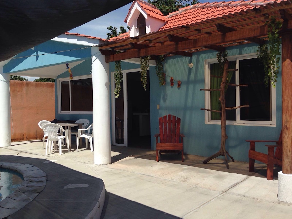 Casa de Playa frente al Mar, completamente privada. La casa cuenta con agua dulce se hizo cisterna para el efecto, y la piscina es de agua salada. Cocina completamente equipada con A/C. Dos habitaciones con A/C y baño privado cada una. Rancho de descanso con hamacas, salida peatonal a la playa, ideal para descansar, acompañado de amigos y familiares, Tranquilo y acogedor. Pensado para la privacidad de nuestros huéspedes. 3 parqueos privados adentro de la propiedad.