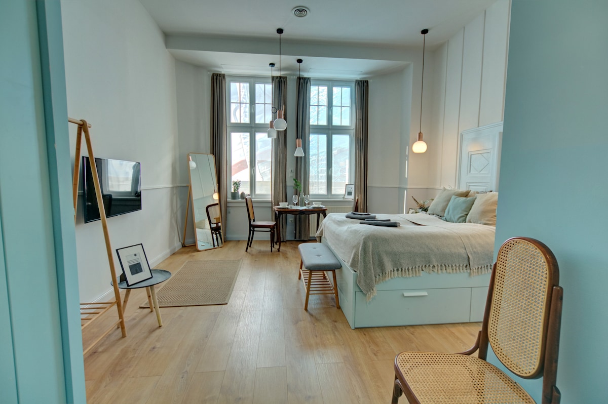 Tranquilo, céntrico, por lo que puedes llegar fácilmente a los principales lugares de interés de la ciudad, a pie o en transporte público, que está frente al apartamento. El apartamento está amueblado con equipo de cocina completo, lavadora, toallas, ropa de cama, gel de ducha y champú. Internet rápido, TV inteligente. El aparcamiento en el garaje a 200 metros es gratuito para 1 coche. El desayuno está incluido en el precio y está disponible en California Coffee, cerca del apartamento. El apartamento de al lado también está en alquiler.