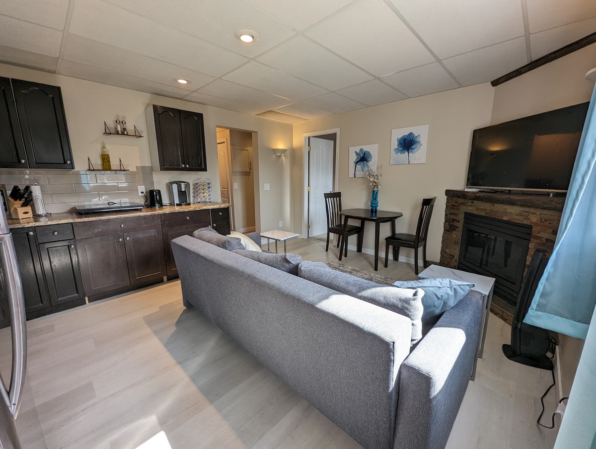 Ubicación perfecta para dos personas en el corazón del distrito de cervecerías del centro de Kelowna. Estamos a poca distancia de cervecerías, bodegas, playas y fabulosos restaurantes en el centro de la ciudad. El espacio ofrece una entrada privada, un dormitorio luminoso y acogedor, KITCHENETTE y baño completo con bañera. PATIO EXTERIOR PRIVADO ESTACIONAMIENTO GRATUITO EN EL SITIO ALMACENAMIENTO SEGURO DE BICICLETAS CARGA DE VEHÍCULOS ELÉCTRICOS Somos una pareja tranquila con 2 perros pequeños y un gato que vive arriba.