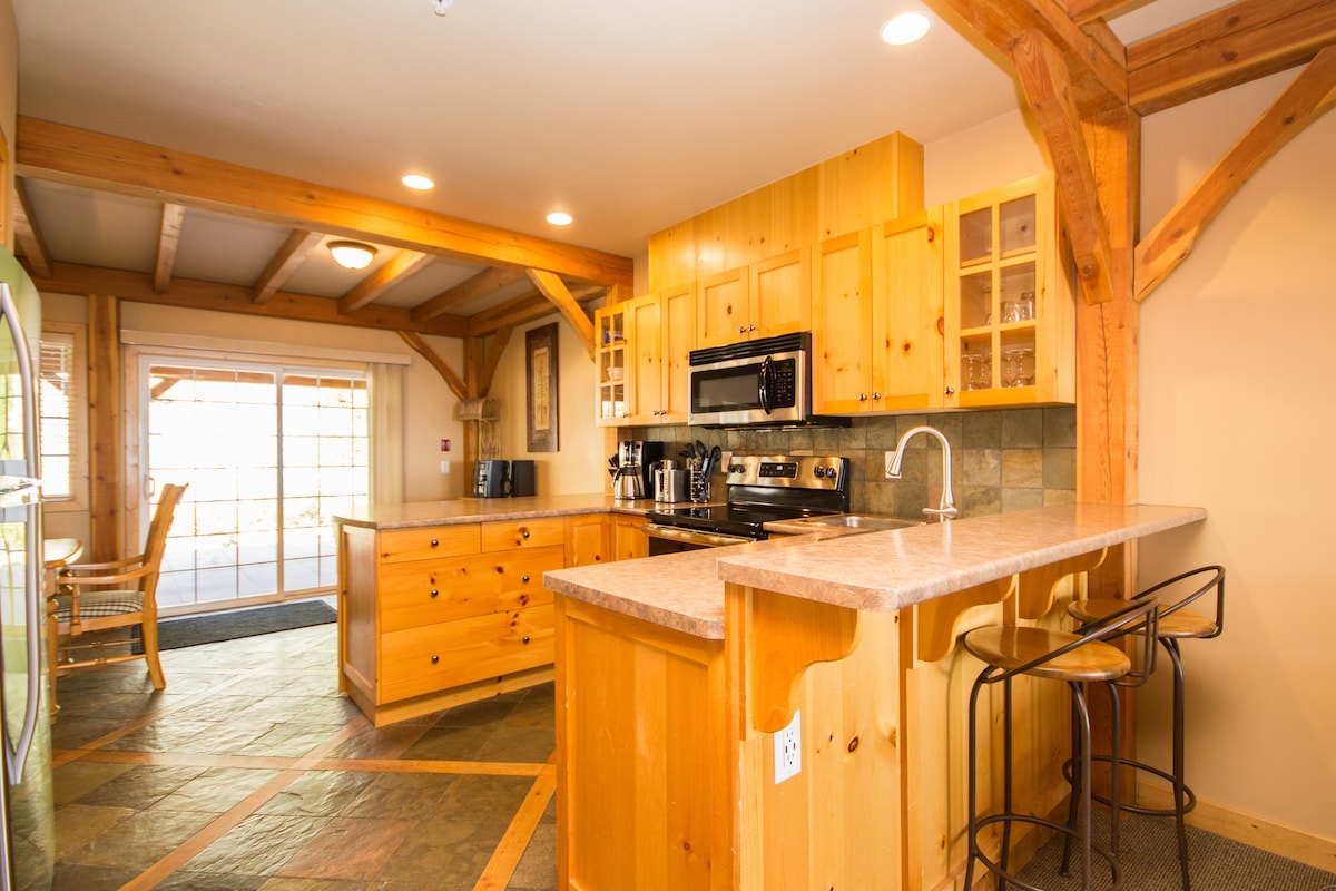Gran casa adosada blanca de 3 dormitorios y 3 baños con bañera de hidromasaje privada y vigas de madera expuestas. Limpio y actualizado, 2 plazas de aparcamiento subterráneo. Ubicación de entrada y salida de esquí. La planta superior es una cama tamaño queen con un sofá cama extraíble nuevo de alta calidad, el segundo nivel tiene 2 dormitorios, uno es un dormitorio tamaño queen y el otro dormitorio tiene 2 camas individuales y un sofá cama extraíble. El salón tiene 2 sofás cama de alta calidad más nuevos. Quédate en el pueblo, camina a restaurantes, etc. en menos de 10 minutos. Pista de esquí más cercana «Perfection» Se admiten mascotas, cargador de vehículos eléctricos, colchones nuevos