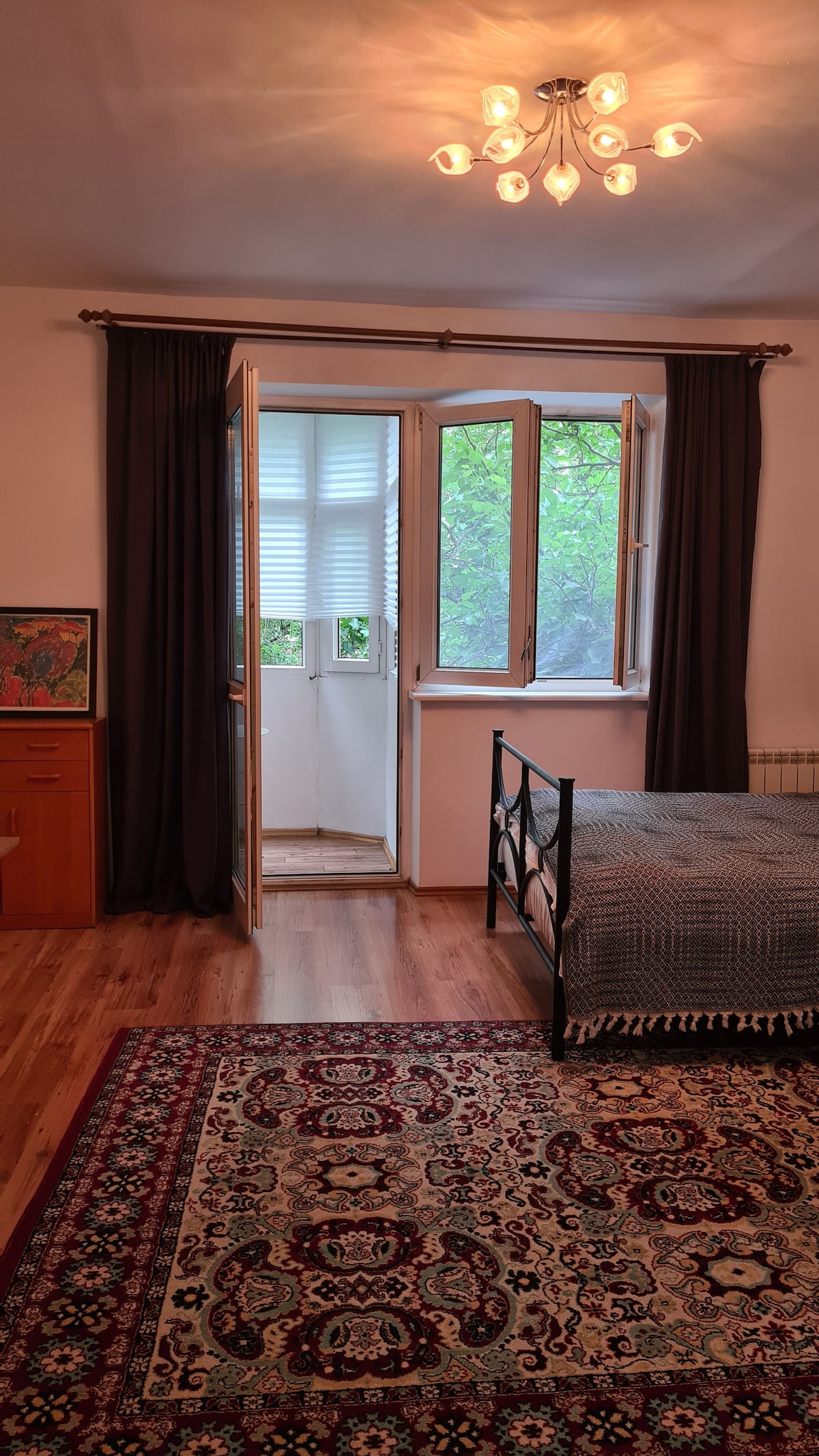 Encantador apartamento en el centro de la ciudad con estilo local Bienvenido a nuestro acogedor y elegante apartamento de 57 metros cuadrados, perfectamente ubicado en un edificio histórico en el corazón de Almaty, justo enfrente del hotel Rixos. Estarás a solo unos pasos de las mejores atracciones, parques, restaurantes y bares de la ciudad, por lo que es una base ideal para parejas, familias con hijos adultos o grupos de amigos que buscan explorar la vibrante ciudad.