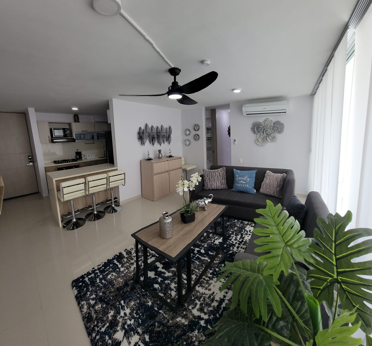 Hermoso, moderno apartamento en altos del prado en el norte de Barranquilla. Este espacioso apartamento, esta compuesto de: - 1 ingreso espacioso - una sala de television open space - un sofá cama - cocina en isla - una habitacion con baño privado con aire acondicionado - una hermosa habitacion espaciosa con aire acondicionado - 1 fantastico baño, con ducha de lujo - 1 baño social, que conecta directamente con la sala