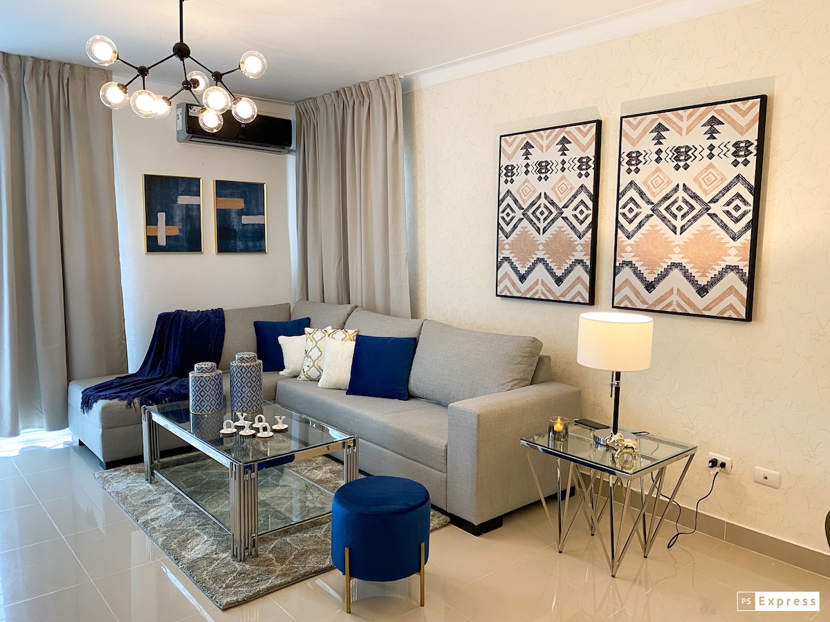 This is a beautiful exclusive suite on the 12th level of the tower with a panoramic view. The concept is modern and luxury . Led iluminated ceilings. Air conditioning in both the living room and bedroom offer a pleasant climate. A very comfortable bed for a good night sleep . 50 -Inch TVwith NETFLIX,WiFi,cable and other amenities are included. Located in one of the most prestigious and secure areas .Whether it’s a business trip or a relaxation vacation, this will be the perfect getaway.