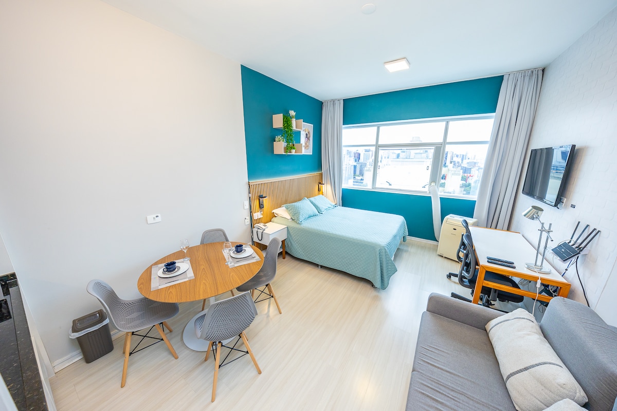 ¡Su rincón exclusivo en el corazón de Curitiba! Estudio moderno con aire acondicionado, lavadora y secadora y balcón. Comodidad y practicidad, ideal para quienes viajan por placer o por trabajo - Ubicación inmejorable: cerca del Mercado Municipal, la estación de autobuses y trenes y la estación comercial. Aparcamiento de pago en el condominio: Pregúntanos sobre la disponibilidad