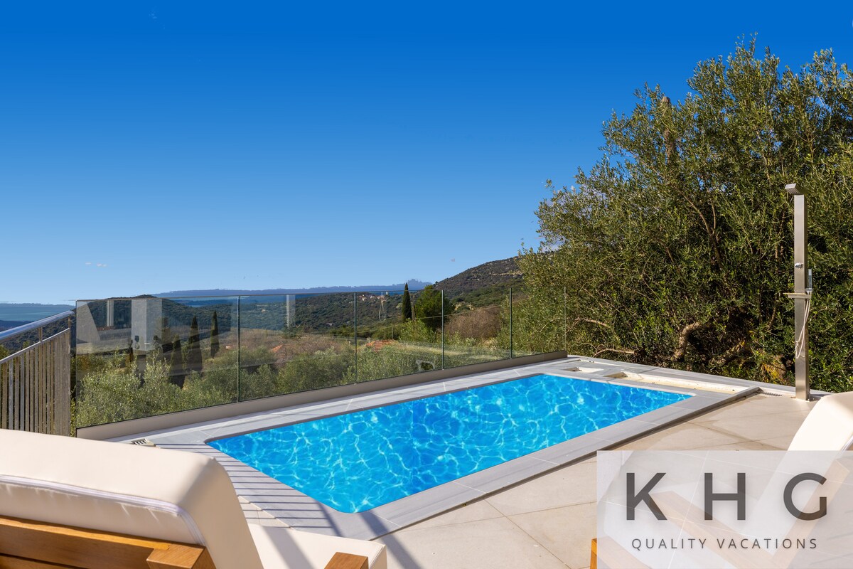 Villa de nueva construcción a los pies del monte Ainos con estacionamiento privado. Espacios al aire libre para disfrutar de la vista de la montaña con piscina, barbacoa, comedor y cenador al aire libre. En una finca de 4,5 acres con vid,olivos, cipreses y flores que está rodeada de un entorno natural puro. Espacio ideal para parejas y grupos de amigos que sobreviven a la privacidad y la relajación, adecuado para aquellos que trabajan a distancia. Cerca de Skala, Sami, Agia Efthimia, playa de Antisamos y cuevas.