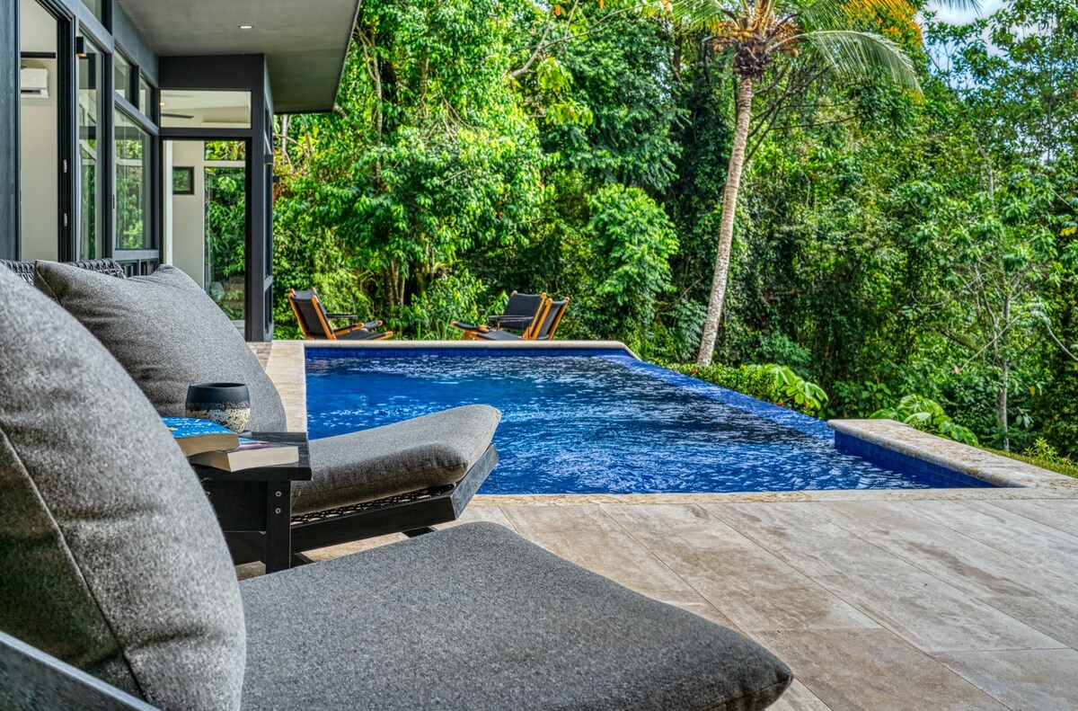 Villa privada de 2 dormitorios y 2 baños con piscina infinita y vistas impresionantes al mar y a la selva cerca de Manuel Antonio. Disfruta de una vida interior y exterior sin fisuras, aire acondicionado, wifi rápido, televisión inteligente y una cocina completa. Perfecto para parejas o familias. A pocos minutos de playas, surf y cascadas. Nosotros nos encargamos de los detalles. Nos complace organizar chefs privados, masajes en el hogar, almacenamiento de comestibles, excursiones y transporte para que puedas relajarte y disfrutar de tu estancia.