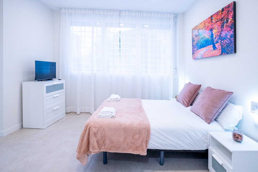 Apartamento a pie de calle.ideal para viajes de trabajo, de estudios,asuntos médicos etc. con vitrocerámica, nevera, lavadora/secadora,lavaplatos, bomba de aire calor/frió, microondas, nespresso, utensilios de cocina completo,hervidor de agua para infusiones,cama matrimonio, sofá cama 190x150, smart tv, wifi, alarma, línea directa metro a Sol ( 15”),amplio baño, ducha efecto lluvia,dispensadores automáticos de gel.zona ajardinada,muy fácil aparcamiento, con dos parques infantiles de columpios