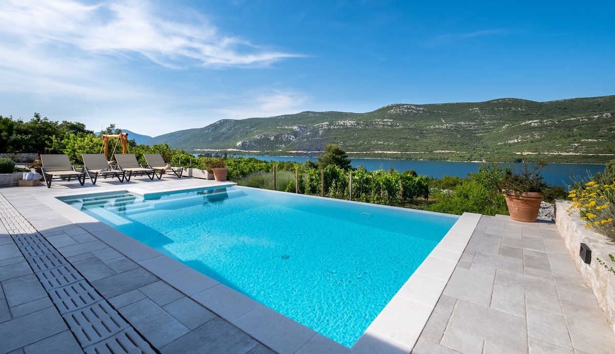 Villa con piscina infinita y jardín, Ston