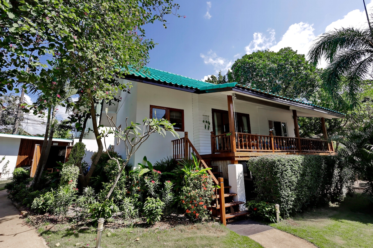 Tu acogedora escapada en Chaloklum Estas encantadoras y luminosas casas están a solo 5 minutos a pie de la playa más impresionante de la isla con aguas cristalinas. Dentro de nuestras lindas casas de campo #1 y #2, un acogedor dormitorio con un amplio armario, un baño bien iluminado y una cocina pequeña con refrigerador. Relájate en el salón con un lujoso sofá después de un día de exploración. Mantente fresco con dos unidades de aire acondicionado y wifi de alta velocidad. Disfruta de las vistas desde la terraza, perfecta para el café de la mañana o las bebidas de la noche.