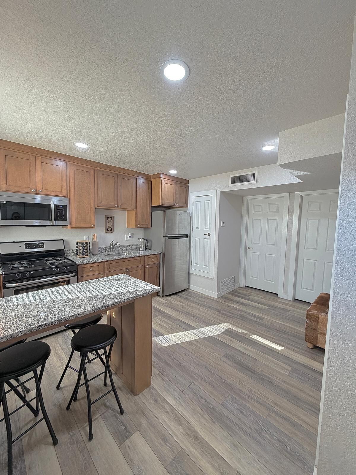 Este alojamiento único tiene un ambiente propio. Ubicado a pocos minutos en coche de la histórica Mesilla y a poca distancia a pie de una cafetería local, un restaurante mexicano y una pizzería. La plaza de Mesilla y los bares están a solo unos minutos en coche. El edificio está totalmente renovado con electrodomésticos nuevos de acero inoxidable y dos minisplits de aire refrigerado, uno en la sala de estar y otro en el dormitorio. Ten en cuenta que hay un tren que ocasionalmente pasa cerca del barrio.