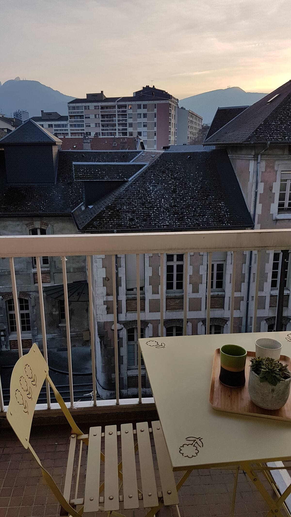 Apartamento de 31 m² decorado con gusto en la 5.ª planta con ascensor, sin vecinos. Clasificado con 3 estrellas por Gites de France Gran balcón de 10 m² con vistas al Granier. Perfectamente equipado para 2 personas. Situado a 5 minutos del centro de la ciudad. Pequeño supermercado al pie del edificio, así como una carnicería, lavandería, farmacia, peluquería, ... Entrada y salida autónomas Fibra Sistema de climatización Plaza de aparcamiento privado en el exterior (aparcamiento cerrado por una barrera que se abre con una placa)