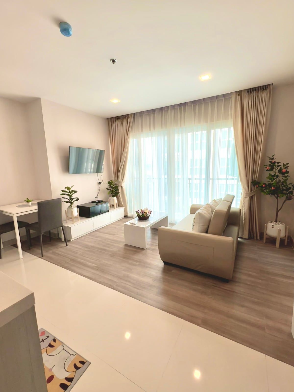 Este nuevo y cómodo apartamento de un dormitorio de 51 metros cuadrados en el centro de Chiang Mai se adaptaría a familias solteras, parejas o pequeñas, con todo lo que necesitas para tu estancia en Chiang Mai. El condominio tiene una habitación con cama tamaño king (colchón suave) y la sala de estar tiene un sofá cama. Situado en el centro turístico, estás a poca distancia a pie del bazar nocturno y a 10 minutos a pie de las murallas de la Ciudad Vieja. Explora fácilmente la calle y los caminos desde esta base central a pie. Todos son bienvenidos a hospedarse.