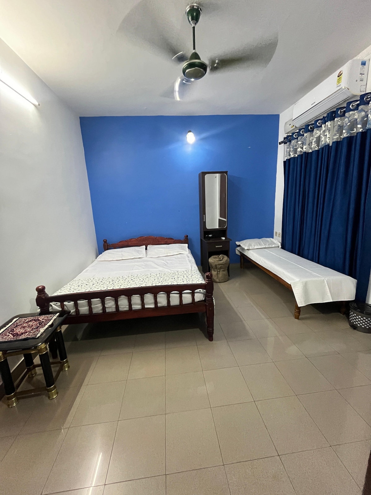 Enjoy comfort and convenience in this spacious, fully furnished 3BHK apartment located in the city centre. Supermarkets, restaurants(veg/non-veg) are just a short walk away, along with private/public bus stands, theatres, and shops. The railway station is only 2 km away. The apartment is on the 1st floor and has 3 bedrooms (one air-conditioned), each with an attached bathroom. Bright, airy, and well-ventilated. The neighbour hood is peaceful and safe, ideal for families.