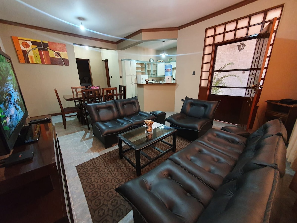 ✅ TIPO DE CAMBIO OFICIAL Crea recuerdos inolvidables en este alojamiento único y familiar, ubicado en la mejor zona de la ciudad, cercano a restaurantes, supermercados y todo tipo de actividades. ¡Bienvenidos! 🏠 Contamos con: - Cama para dos personas - Sofácama para dos personas - Hermosos y modernos espacios - Cocina con todos los implementos necesarios - Baño con ducha caliente - Smart Tv - Todos los servicios (Wifi, Agua, Luz)