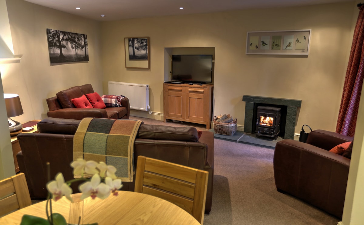 Una romántica, elegante y acogedora casa de campo para dos personas en el hermoso Parque Nacional del Distrito de los Lagos, a media milla de las orillas del lago Windermere y a 20 minutos en coche de la salida 36 de la M6. Se admiten perros. Nuestra casa de campo de 250 años cuenta con una moderna decoración rústica, calefacción por suelo radiante, estufa de leña, internet superrápido, Smart TV, sistema de sonido Sonos y un cargador de vehículos eléctricos podPoint de 7 kW de cortesía. Hay muchos paseos maravillosos a pie y en bicicleta disponibles desde la puerta principal. Las estancias comienzan los lunes o los viernes.