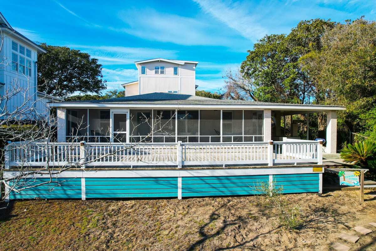 ¡Uno de los mejores de Folly! Esta casa de 4 dormitorios y 3,5 baños y 2 pisos frente al mar se encuentra a solo 5 cuadras de Center Street. Sea Palm es una porción del cielo en un lote estrecho. Un alojamiento extremadamente cómodo con capacidad para un máximo de 8 huéspedes. En la planta baja 2 camas tamaño queen, 1 litera con 4 camas individuales y lavandería. Otra cama queen en la planta superior con baño privado. Cocina/comedor/sala de estar abiertos, patio cubierto y terraza con vistas al mar. También hay una ducha al aire libre, una parrilla y un columpio en el porche en la planta baja. Permite un máximo de 3 perros con preaprobación.
