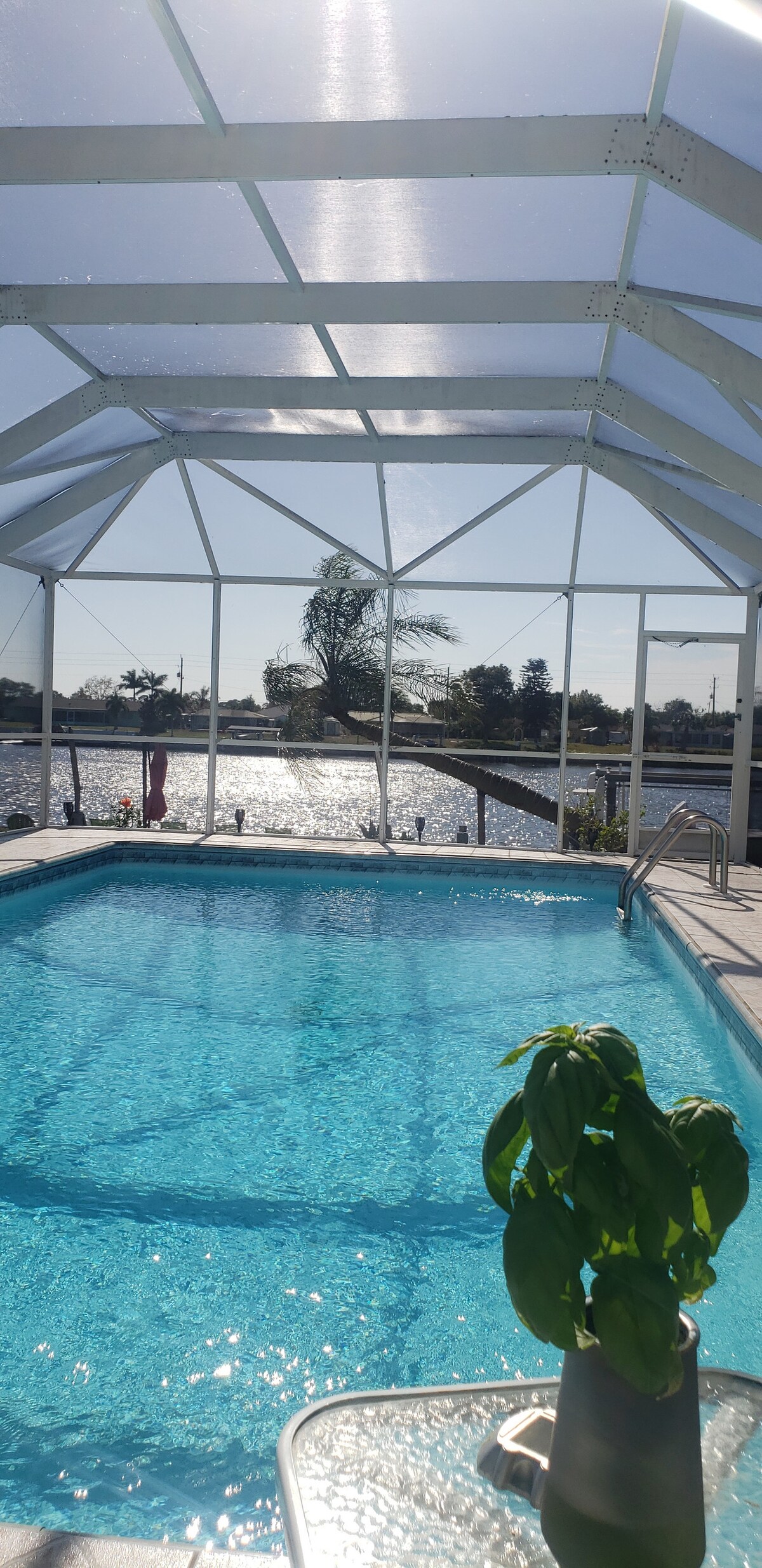 Great place to be! Spectacular Waterfront view. Heated pool with spa. Very quiet neighborhood. One bedroom suite. Living room and bedroom have stunning panoramic view of Piece River, pool and canal. Full kitchen with everything you might need for a comfortable stay. Lanai and back yard have lounge chairs, seating patio set and outdoor egg chair for you to relax and enjoy this true Floridian experience.