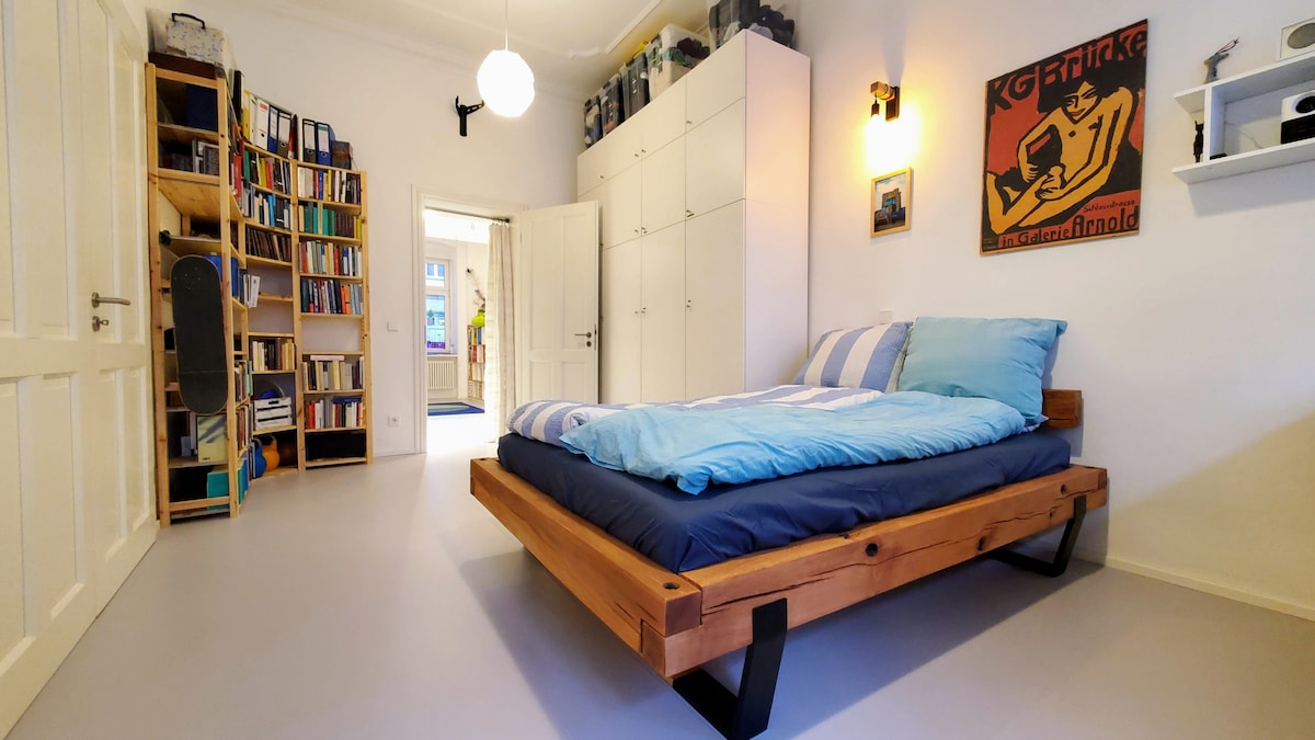 Piso entero de ensueño de 142 metros cuadrados en edificio antiguo en Friedrichshain. Calefacción cálida, suelo de roble, estilo vintage-RDA original, 6 puntos de suspensión para Shibari, esterillas de yoga, decorado con obras de arte originales, wifi, lavavajillas, cafetera Mokas. ¡NO SE PERMITEN FIESTAS, EVENTOS NI MÚSICA RUIDOSA! Por favor, NO RESERVES para sesiones de fotos/vídeos. Ponte en contacto conmigo y se debe acordar un trato diferente.