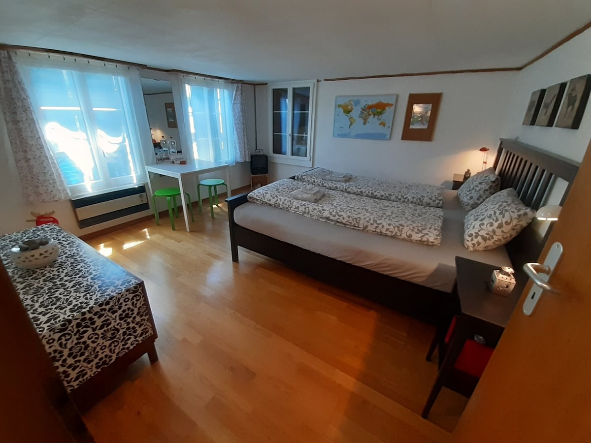 B&B de estilo nórdico en una antigua granja centenaria reformada. 3 perros de trineo viven en el invernadero y en el primer piso. El apartamento en la planta baja tiene: dormitorio con vistas a las montañas | habitación infantil/biblioteca | sauna de infrarrojos | comedor/sala de estar con estufa sueca y sofá cama | cocina | baño pequeño. La altura de la habitación en el baño, en la habitación de los niños y en el dormitorio es de 1,83 m. El resto de habitaciones tienen una altura normal. La tarjeta PanoramaCard Thunersee (tarjeta de invitado) te permite obtener descuentos.
