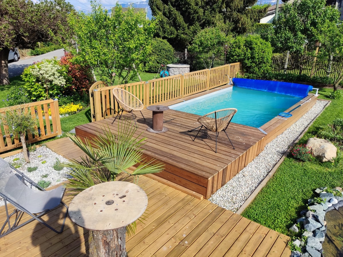 Le damos la bienvenida con mucho gusto a nuestra casa rural Le Clos d'Olon totalmente independiente en el campo con piscina a 5 minutos de Rives y Moirans, a 10 minutos de Voiron y 25 minutos de Grenoble. Le ofrecemos un apartamento con todas las comodidades para un máximo de 4 personas de 50 m2 con cocina equipada, cuarto de baño, un dormitorio con una cama de 140 y una sala de estar con un sofá cama de 140. Ideal para sus vacaciones, viajes o formación. ¡Estamos deseando recibirle!