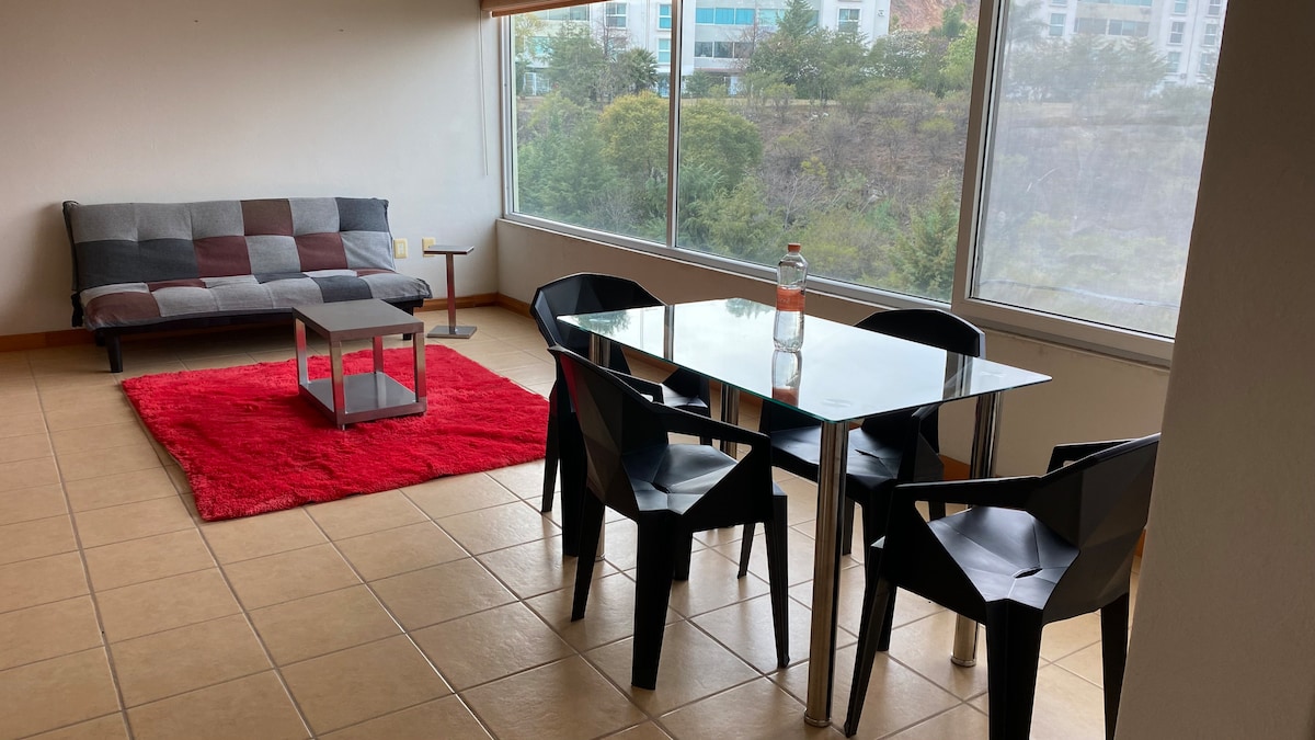 Relájate en este espacio tranquilo y privado a 5 min de Ciudad Salud IMSS, ISSSTE y hospitales, ideal para trabajadores del área de la salud y corporativos ubicado en zona exclusiva del desarrollo de Tres Marías, cercano a corporativos, club de golf tres Marías y a tan solo 15 a 20 minutos del centro de Morelia en automóvil. El departamento cuenta con dos habitaciones y dos baños completos, cocina y sala de estar. Sean bienvenidos.