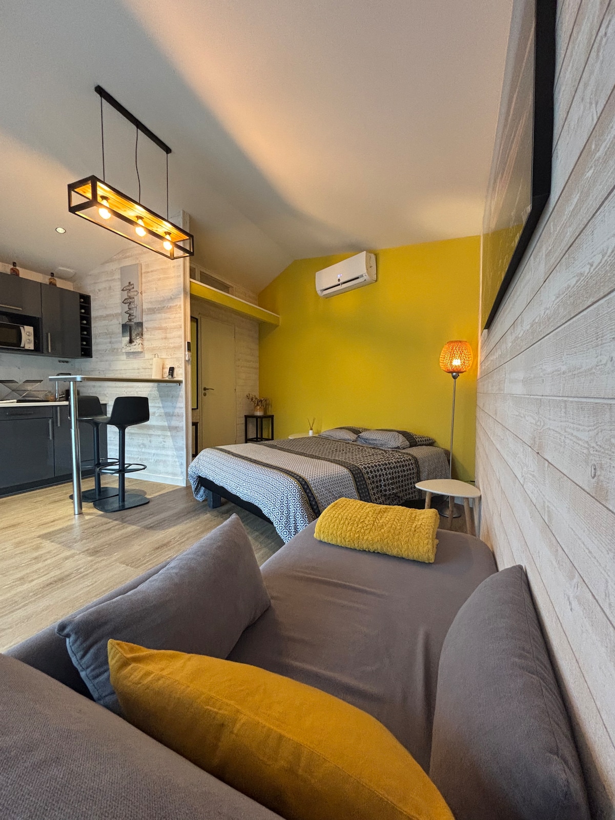 Disfrute de una escapada romántica en este granero nuevo de 75 m², completamente renovado con refinamiento. Pensada para la calma y la intimidad, cuenta con dos elegantes habitaciones y tiene capacidad para hasta 4 personas. Disfrute de un spa privado para dos personas, accesible durante todo el año, para momentos inolvidables en pareja. Acceso y estacionamiento privados. A 100 m del centro de la ciudad y a 20 minutos de Burdeos. No se aceptan animales. Opciones a pedido: champán y desayuno los fines de semana.