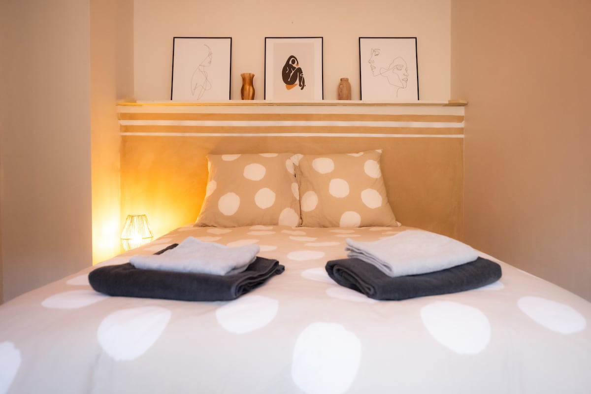 Hemos renovado completamente nuestro apartamento en el centro de la ciudad para convertirlo en un espacio cálido y agradable para vivir. Todo está pensado para su comodidad: una acogedora sala de estar, una cocina equipada, un dormitorio con ropa de cama cómoda y un baño moderno. Encontrará todo lo necesario para una estadía sin preocupaciones: WiFi, lavadora, secador de pelo… Ya sea que esté de viaje o de viaje, ¡estaremos encantados de darle la bienvenida!